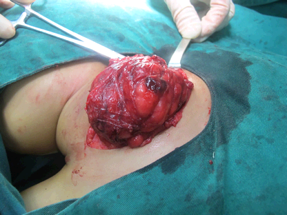 2012年11月08日成功施行了一例左颈部巨大包块切除的手术。患儿,女,4岁,因“发现左颈前肿块3年”于