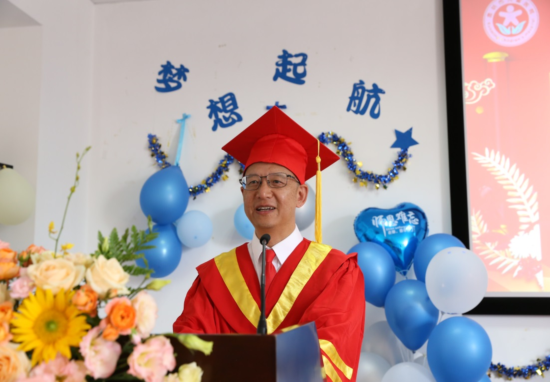 国歌奏毕,全体入坐。昆明医科大学附属儿童医院学位评定分委员会主席张铁松院长在热烈的掌声中为毕业生致辞。他向全体毕业生表示热烈的祝贺,向毕业生的父母、师长们致以诚挚的问候。同时对毕业生提出殷切期望,希望同学们拥有家国情怀、立志民族复兴,肩负起自己的职责,为祖国未来的花朵撑起一片蓝天。面对人生未来路上的困难,希望毕业生能够善于学习、终身学习,锻炼自己的能力、调整心态,无惧任何挑战、披荆斩棘、勇往直前,拥抱自己的闪耀青春。
