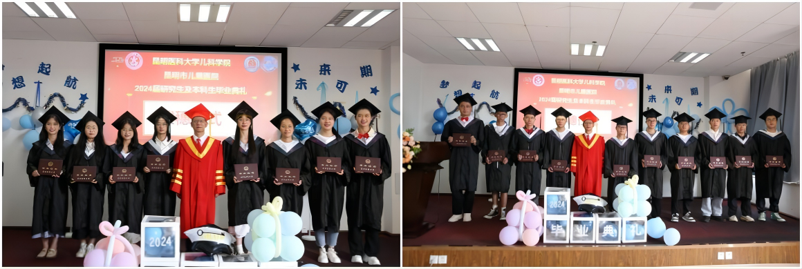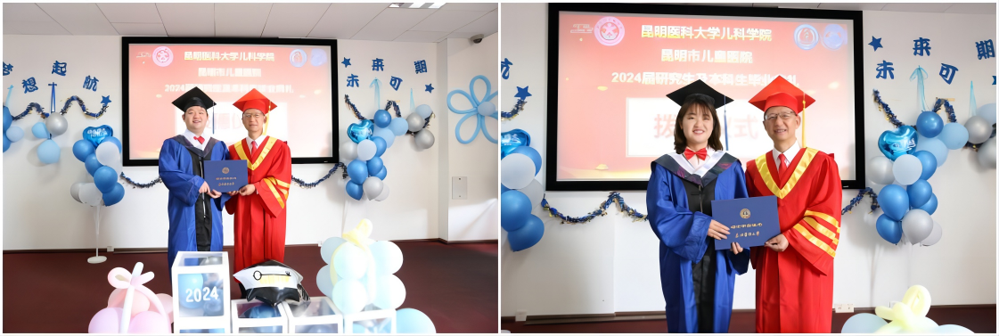 我院作为昆明医科大学儿科学院、昆明医科大学附属儿童医院、大理大学研究生联合培养单位,为加强医学人文教育,实现应届毕业生踏入社会的仪式感、使命感、责任感,营造师生互动的良好氛围,2024年6月20日下午,在前兴院区行政楼三楼大会议室隆重举行了以“青春闪耀,踏浪逐行”为主题的2024届研究生及本科生毕业典礼。院领导班子成员、学位评定分委员会委员、研究生导师、2024届全体毕业生等共百余人到场,共同见证和分享毕业生们学位授予和顺利毕业的喜悦时刻。