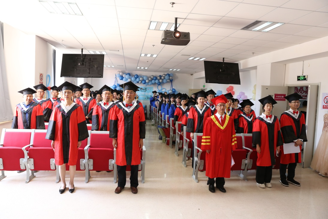 毕业典礼在庄严的国歌声中拉开序幕。