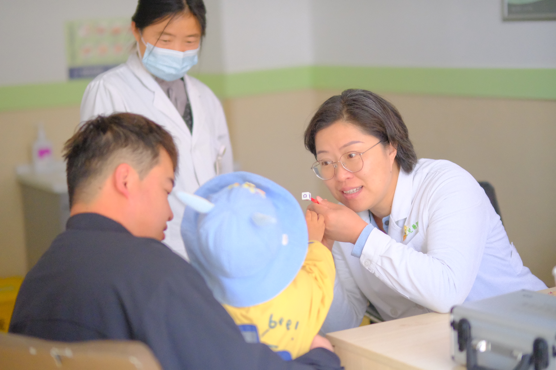 眼科专家对患儿进行全方位视力检查,普及护眼知识,传授预防近视技巧。